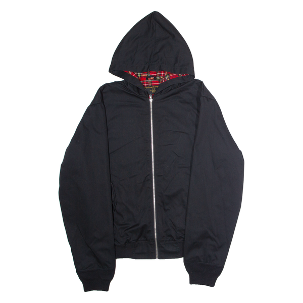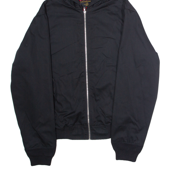 HOODED KING GEORGE Mens Lined Jacket Black Twill Hooded XL
