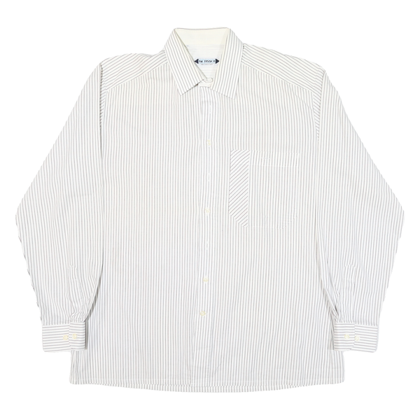 JAC TISSOT Mens White & Grey Striped Shirt L Cotton Blend Button Collar Formal