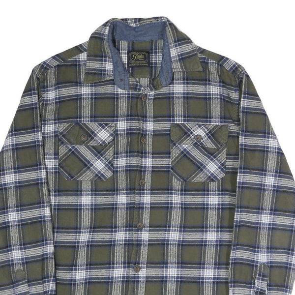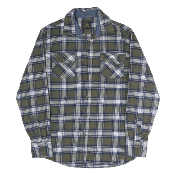 JACHS Mens Green & Blue Check Shirt M Cotton Blend Casual Long Sleeve Button