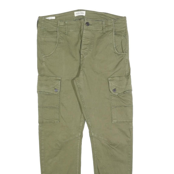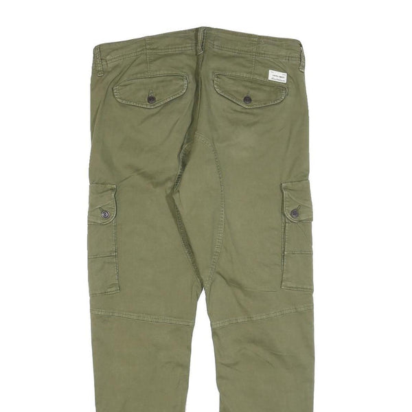 JACK & JONES Mens Cotton Blend Slim Cargo Trousers Green W32 L28 Casual Outdoor