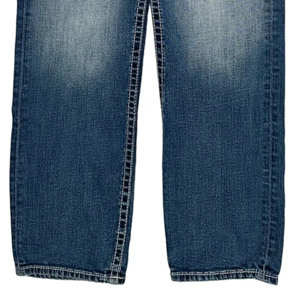 Jake Straight Bke Jeans, fit a 30″ Waist and 32″ inseam.