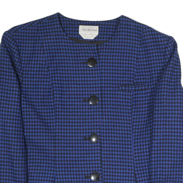JEAN ST LOUIS Womens Blue & Black Houndstooth Coach Jacket L Polyester Blend