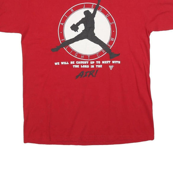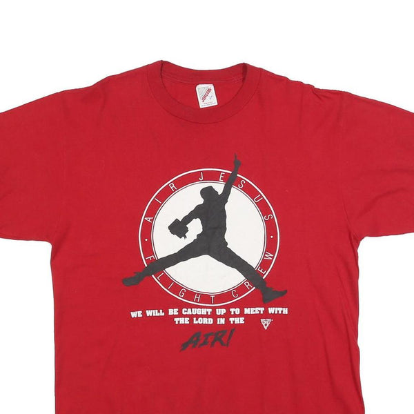 JERZEES Mens Red Graphic T-Shirt L Short Sleeve Crew Neck Air Jesus Flight Crew