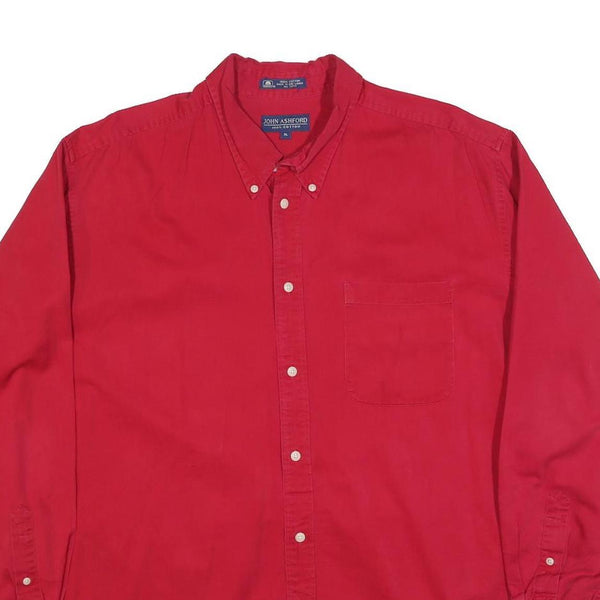 JOHN ASHFORD Mens Red Plain Shirt XL Button Down Collar Casual Formal