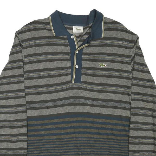 LACOSTE Mens Blue & Grey Long Sleeve Striped Polo Shirt M Cotton Blend