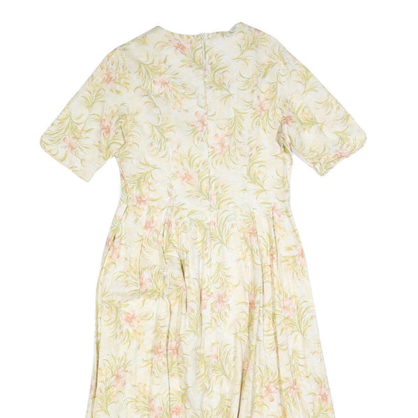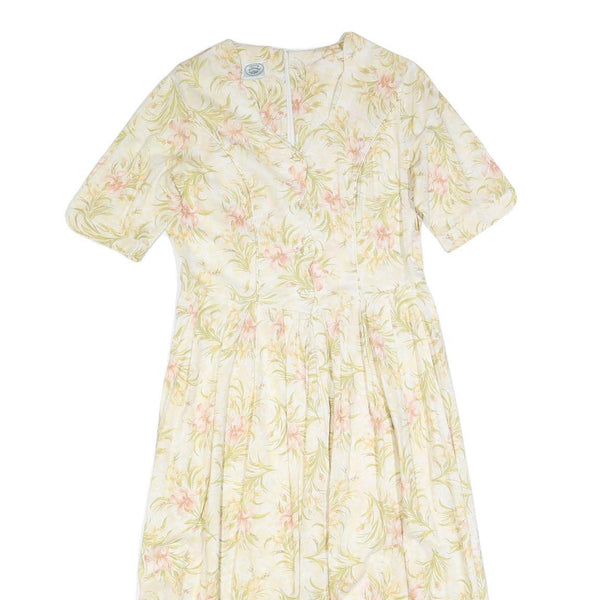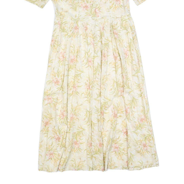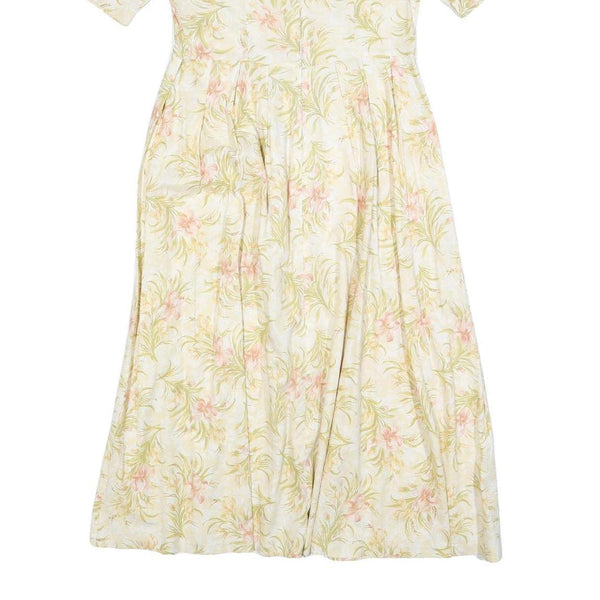 LAURA ASHLEY Womens Cream & Pink Floral Fit & Flare Cotton Blend Midi Dress UK