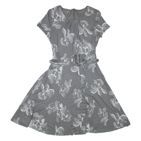 LAURA ASHLEY Womens Day Dress Grey Viscose Floral Short Sleeve Knee Length UK 12