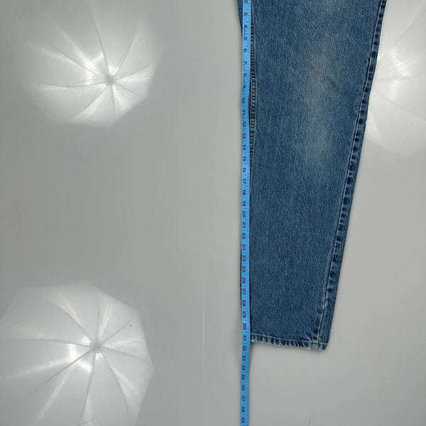 Lee Jeans, fit a 30″ Waist and 32″ inseam.