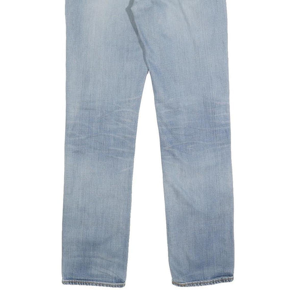 These LEVI'S 511 Slim jeans for mens feature a classic light blue denim with a medium wash and subtle distressing on the front thigh area. The denim has a slightly worn appearance, adding character while maintaining a clean and stylish look. Signature stitching is visible on the back pockets along with the iconic LEVI'S red tab on the rear right pocket.