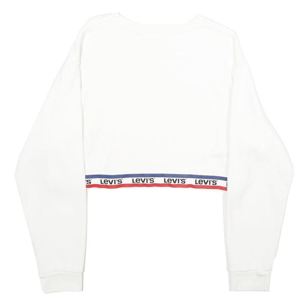 LEVI'S Womens White & Navy Crew Neck XS Logo Band Sweatshirt Crop Top
