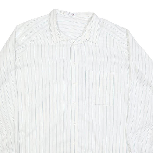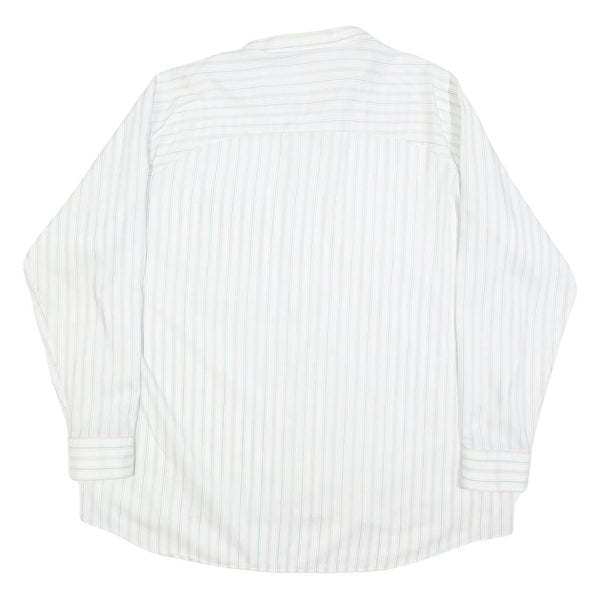 LIBERO Mens White Blue Striped Shirt 2XL Cotton Blend Long Sleeve Button Collar