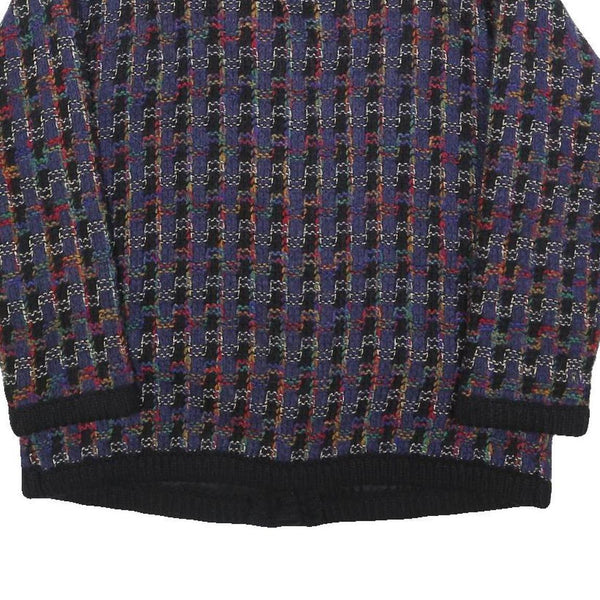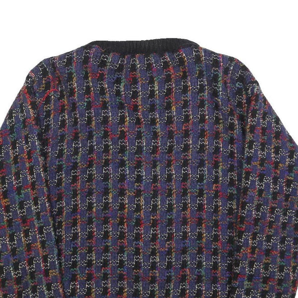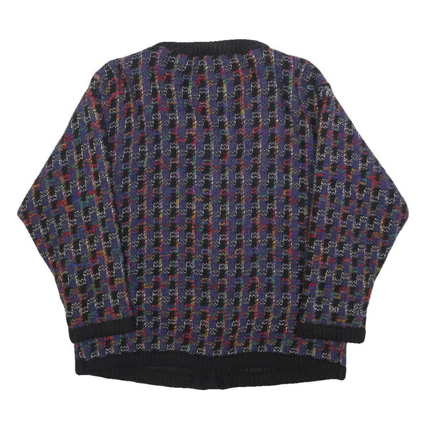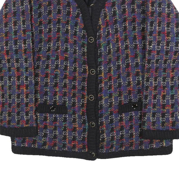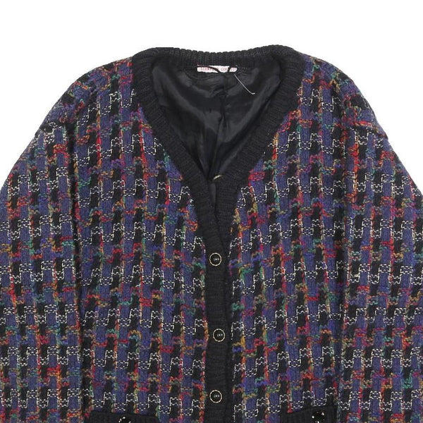 LOTOS Womens Navy & Multicolour Patterned Cardigan V-Neck Chunky Knit M Wool