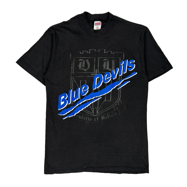 Made in usa single stitch blue devils soffe t-shirt - medium black cotton