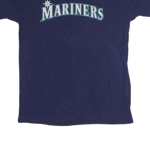 MAJESTIC Mens Blue & Grey Mariners Graphic Short Sleeve Crew Neck L T-Shirt
