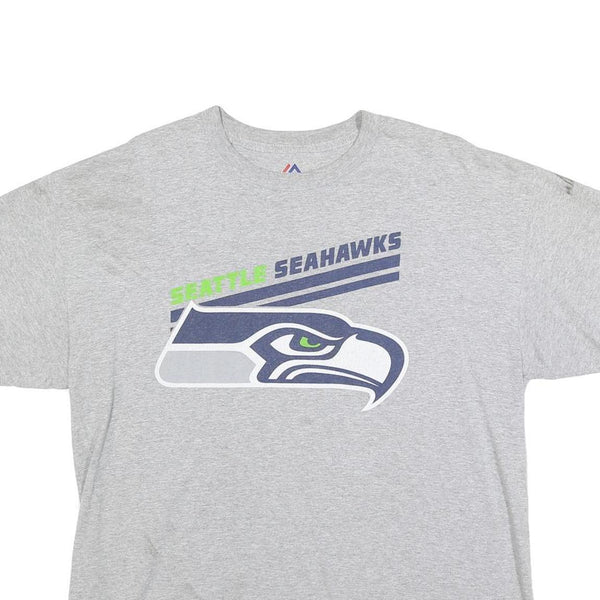 MAJESTIC Mens Grey Seattle Seahawks Graphic T-Shirt L Short Sleeve Round Neck