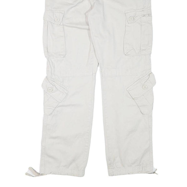 MATCHSTICKS Mens Regular Fit White Cargo Cotton Blend Trousers W32 L30