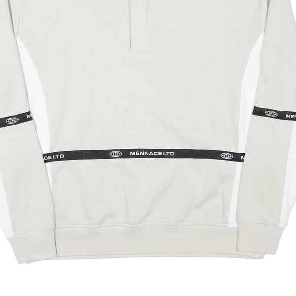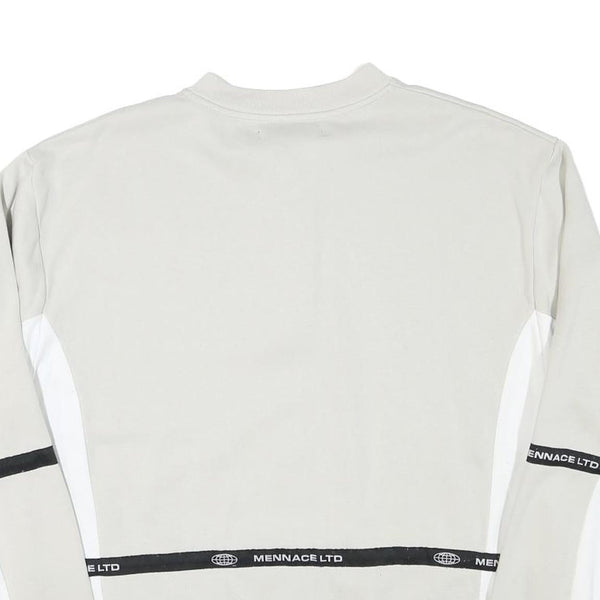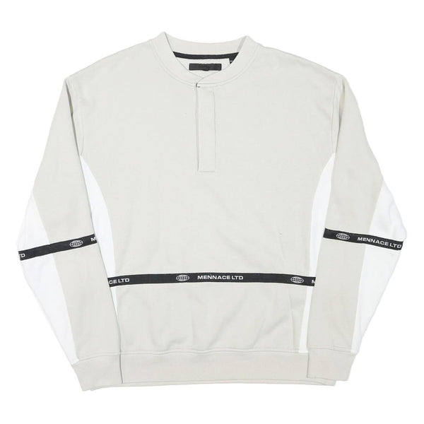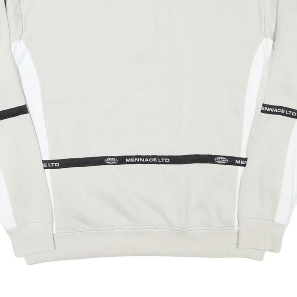 MENNACE Mens Beige & White Sweatshirt Crew Neck M Logo Tape Detail Cotton Blend
