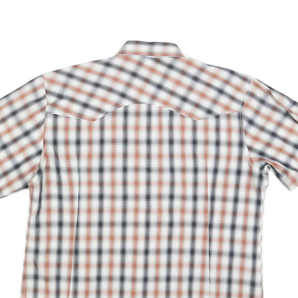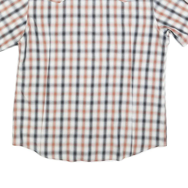 Mens Beige Black & White Checked Shirt L Cotton Blend Short Sleeve Casual