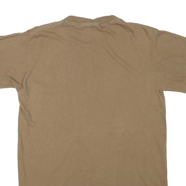 Mens Beige Plain Cotton Blend T-Shirt S Short Sleeve Crew Neck Casual Basic