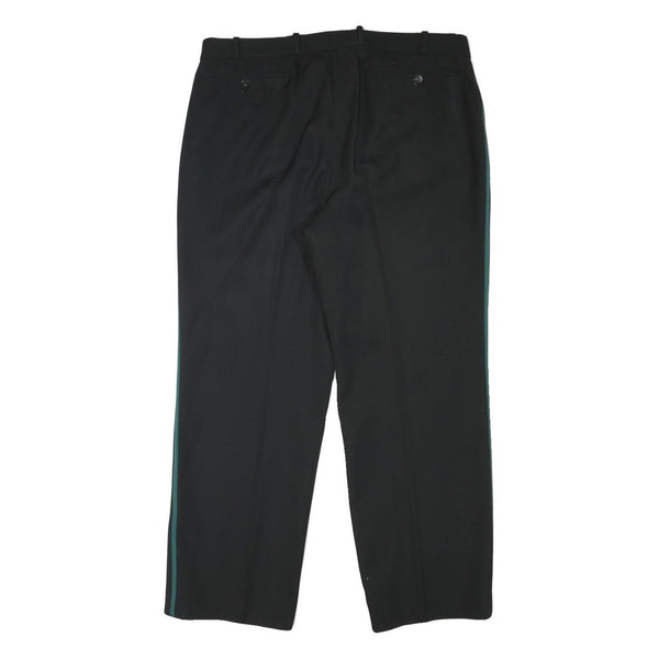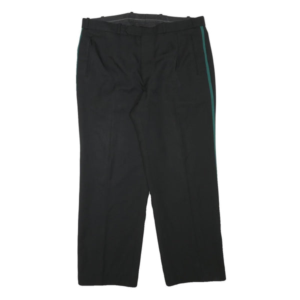 Mens Black & Green Polyester Blend Regular Fit Straight Trousers W37 L29