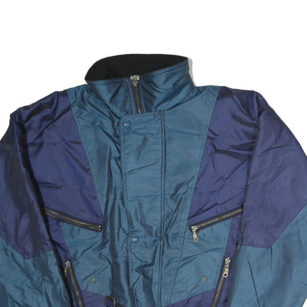 Mens Blue Navy & Teal Zip Up Nylon Jacket M Colourblock Windbreaker