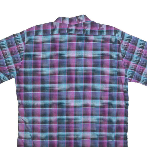 Mens Blue & Purple Check Cotton Shirt M Short Sleeve Button Pocket Casual