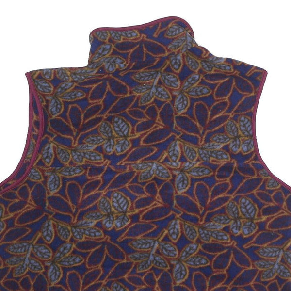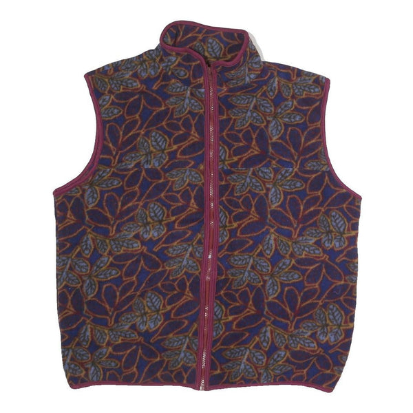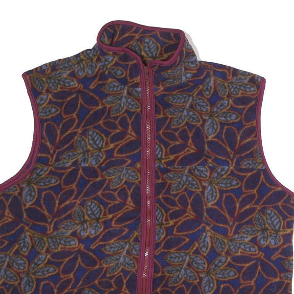 Mens Burgundy Blue Leaf Pattern Polyester Zip Sleeveless Jacket Vest L Casual