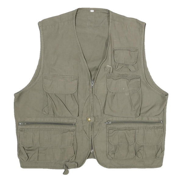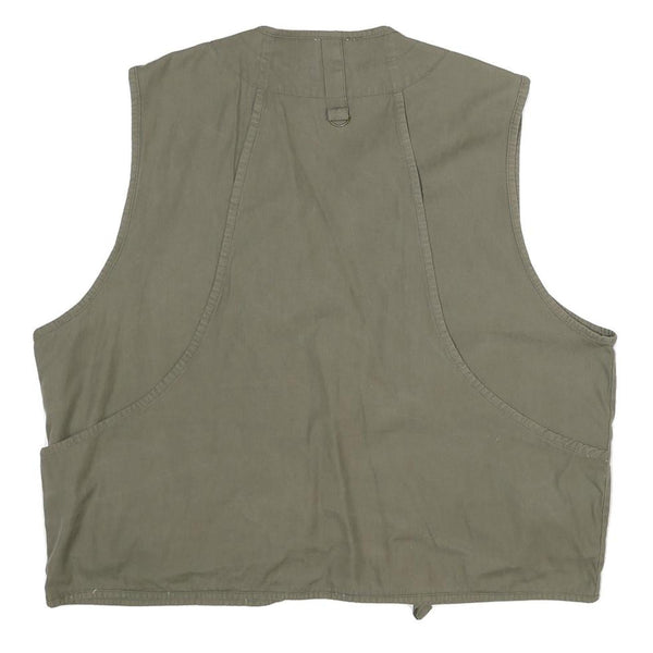 Mens Green Cotton Blend Utility Zip Vest 2XL Multi Pocket Casual Outdoor