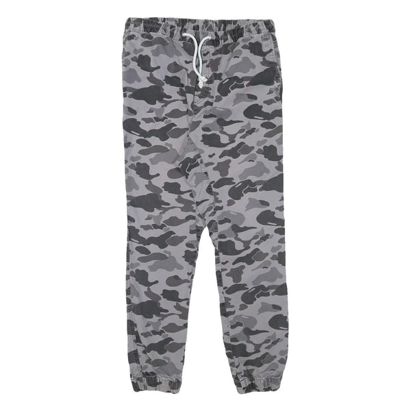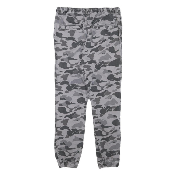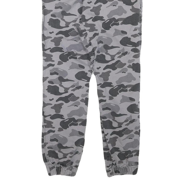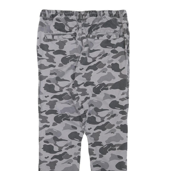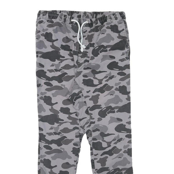 Mens Grey Camouflage Slim Fit Drawstring Waist Trousers W30 L27 Casual Cotton