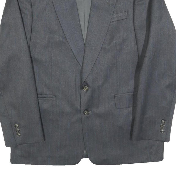 Mens Grey Wool Blend Plain Classic Tailored Jacket L Button Closure