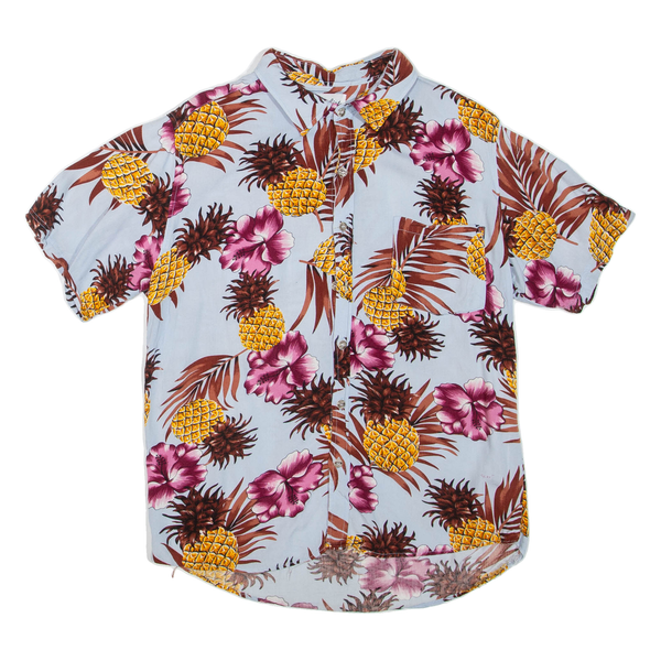Mens Hawaiian Shirt Blue Floral M