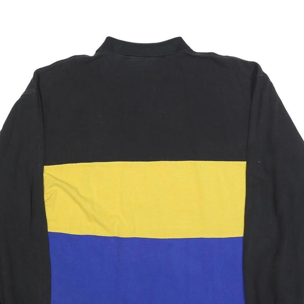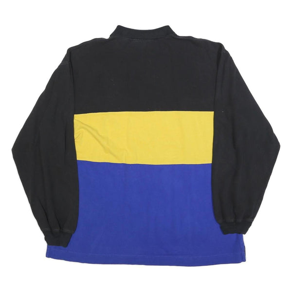 NAUTICA Mens Black & Yellow Blue Colourblock Long Sleeve Polo Shirt 2XL Zip Neck