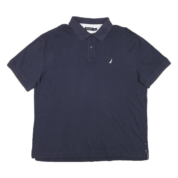 NAUTICA Mens Navy Blue Short Sleeve Plain XL Cotton Blend Polo Shirt Casual