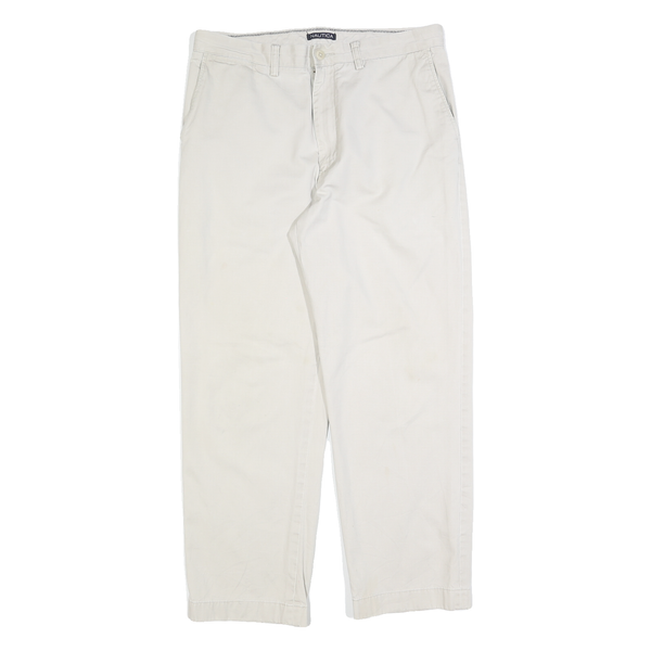 NAUTICA Mens Regular Fit Beige Cotton Blend Zip Trousers W34 L30 Comfortable
