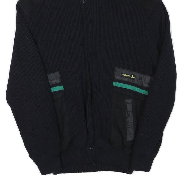 NAVIGARE Mens Black Wool Blend Jacket S Knit Zip Up Plain Stylish Casual