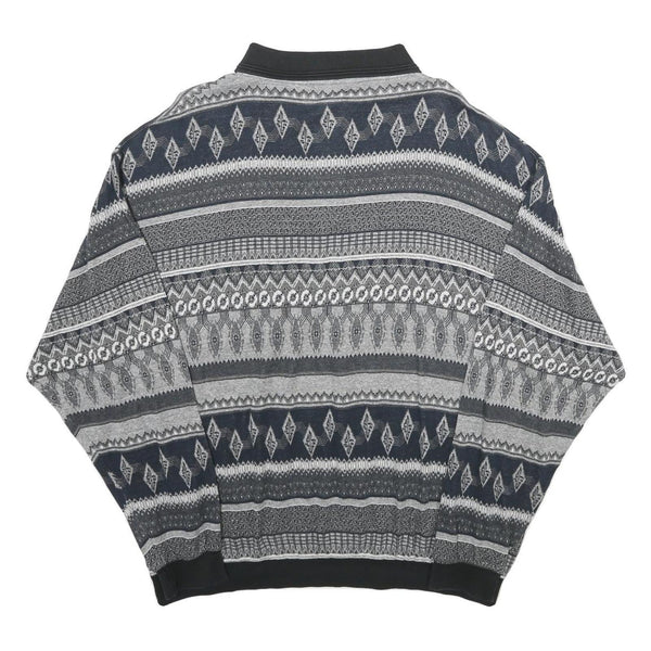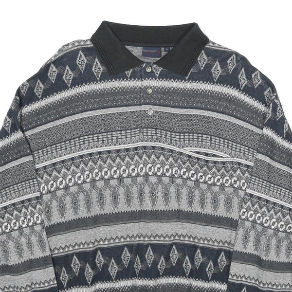NICK TAYLOR SPORTSWEAR Mens Black & Grey Patterned Jumper Polo Collar Basic Knit
