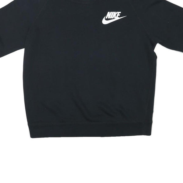 This mens Nike sweatshirt is crafted in a deep black colour with a contrasting white Nike logo printed on the left chest. It features a simple and clean design with short sleeves and a crew neck, creating a classic and sporty look.