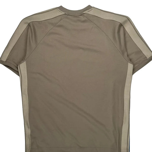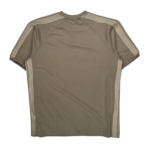 Nike Beige T-Shirt With Blue And White Stripes On Sleeves