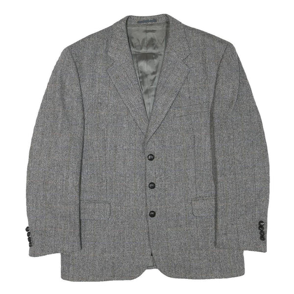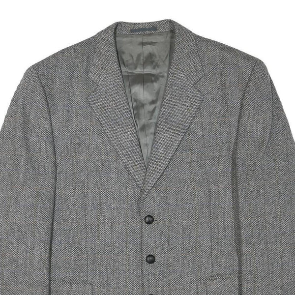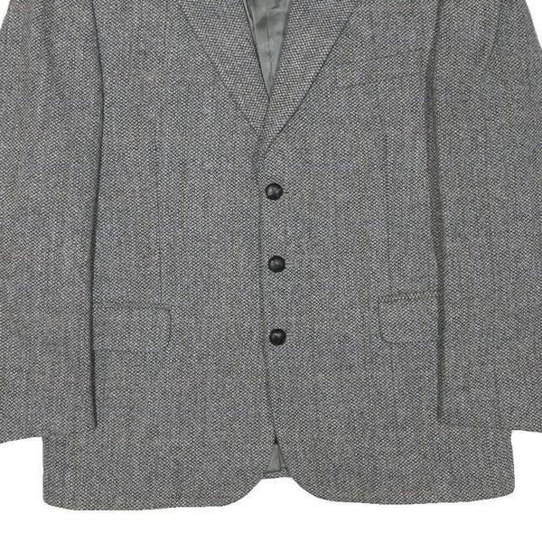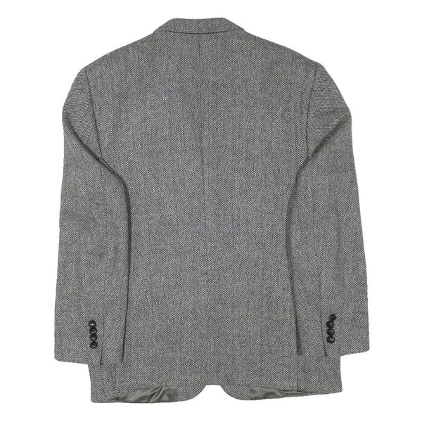 OLIVER GRANT Mens Grey Wool Blend Classic Jacket L Button Herringbone Blazer