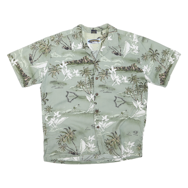 PALMWAVE Mens Green Hawaiian Style M Cotton Blend Casual Shirt Tropical Print