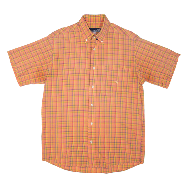 PETER POLO Mens Shirt Orange Check M