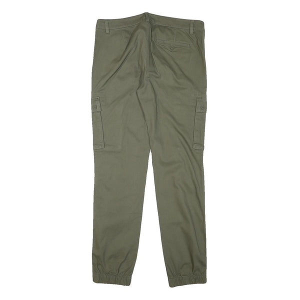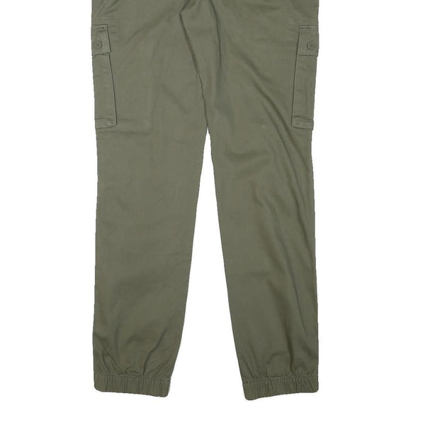 PIER ONE Mens Cotton Blend Slim Cargo Green Trousers W34 L32 Zip Pockets