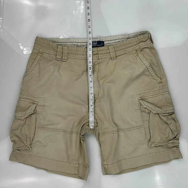 Polo By Ralph Lauren Cargo Shorts, fit a 38″ Waist and 9″ inseam.
