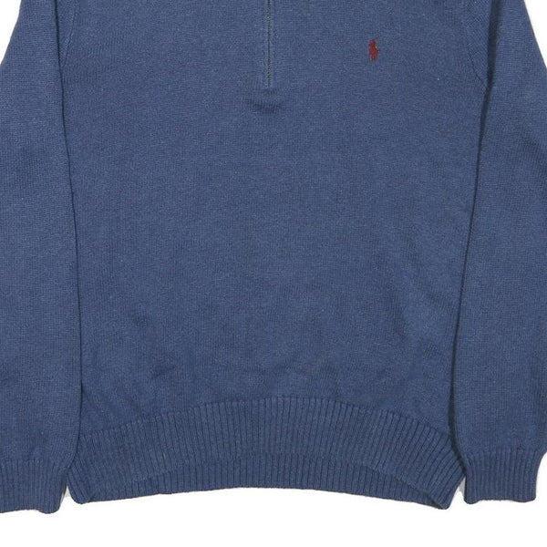 POLO RALPH LAUREN Mens Blue Rib Knit Half Zip Patterned Jumper XL Cotton Blend