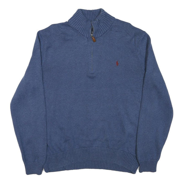 Polo ralph lauren mens blue rib knit half zip patterned jumper xl cotton blend
