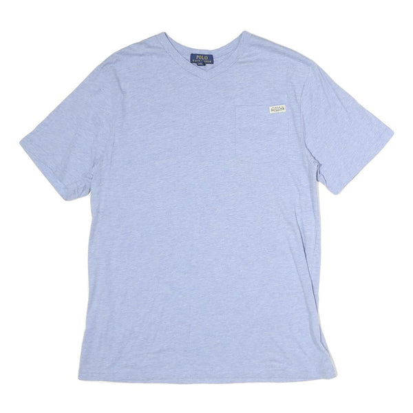 POLO RALPH LAUREN Mens Blue XL V-Neck Plain Cotton T-Shirt Pocket Casual