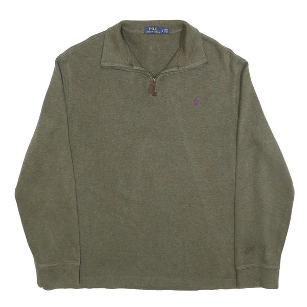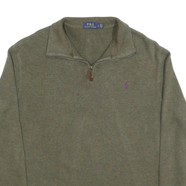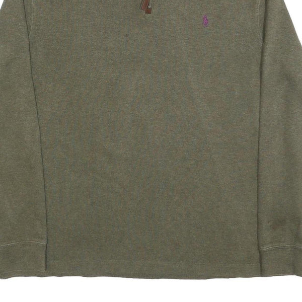 POLO RALPH LAUREN Mens Green Cotton Pullover Plain Half Zip Jumper L Classic