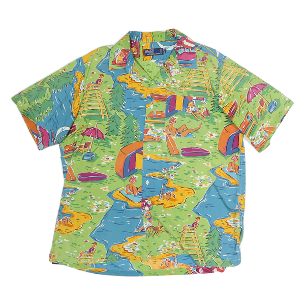 POLO RALPH LAUREN Mens Green Relaxed Shirt XL Cotton Summer Print Casual
