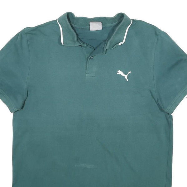 PUMA Mens Green Polo Shirt Short Sleeve Plain M Cotton Blend Sport Casual