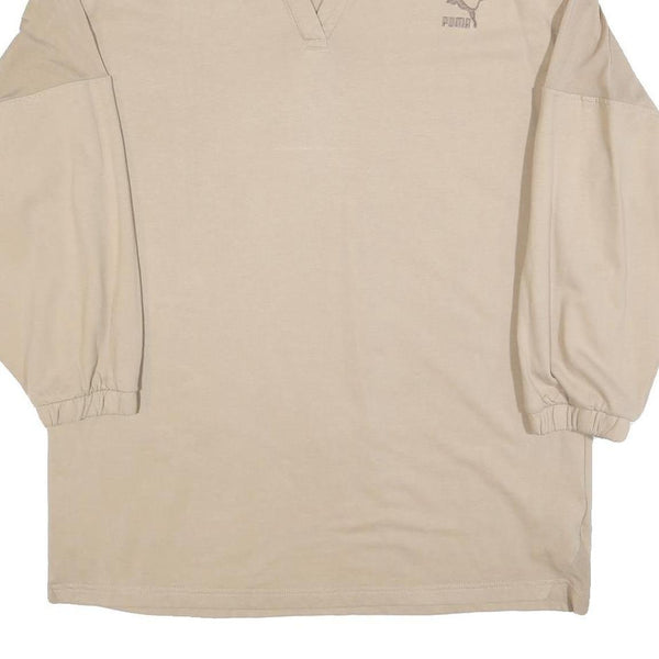 PUMA Womens Beige Cotton Blend Sweatshirt Collared XL Logo Casual Oversized